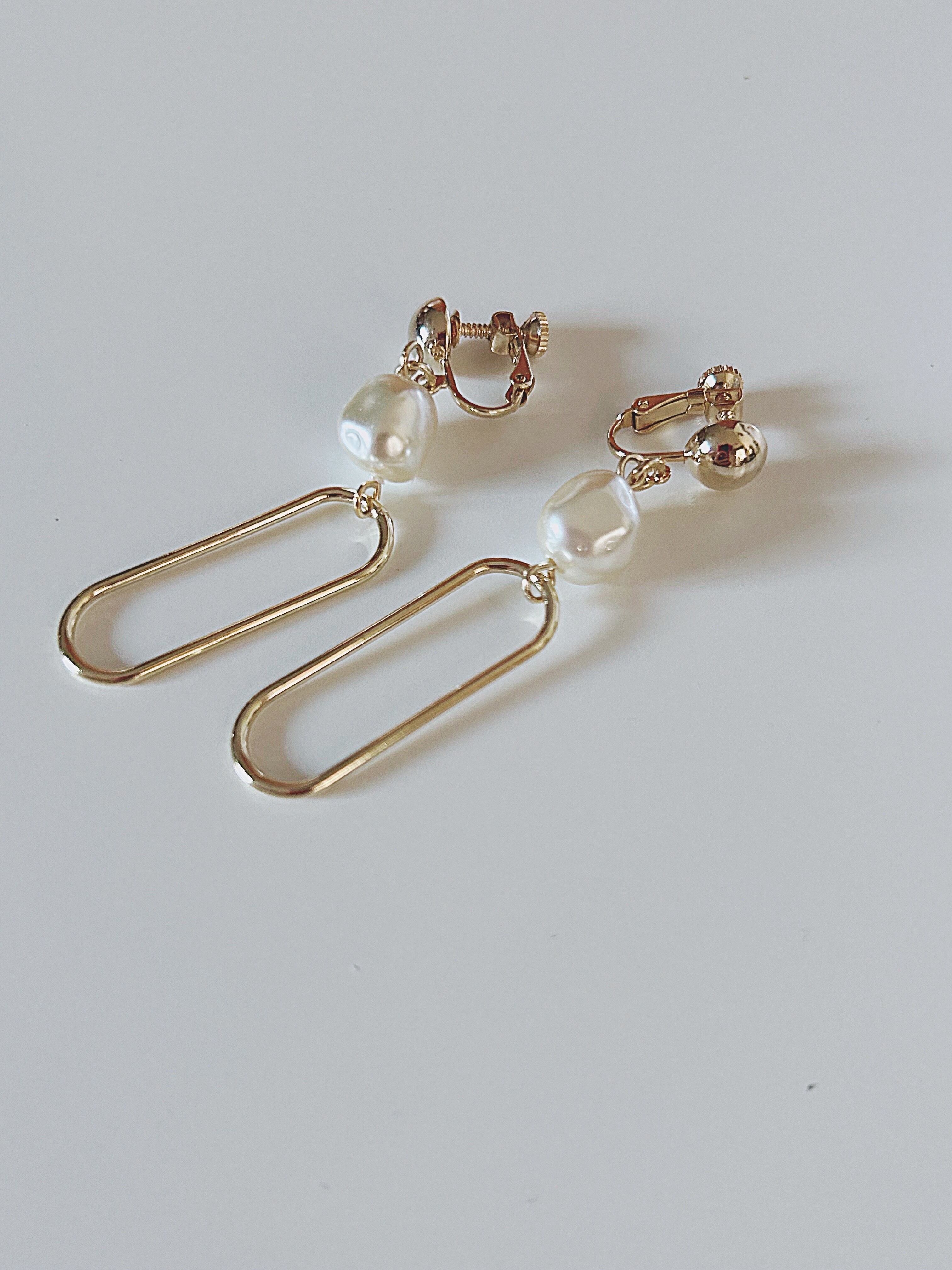 大粒な約10ミリのフランス製バロックパールが上品で楕円形メタルのゆれ感がリッチ感と存在感のあるカッコ可愛いデザインになりました✨